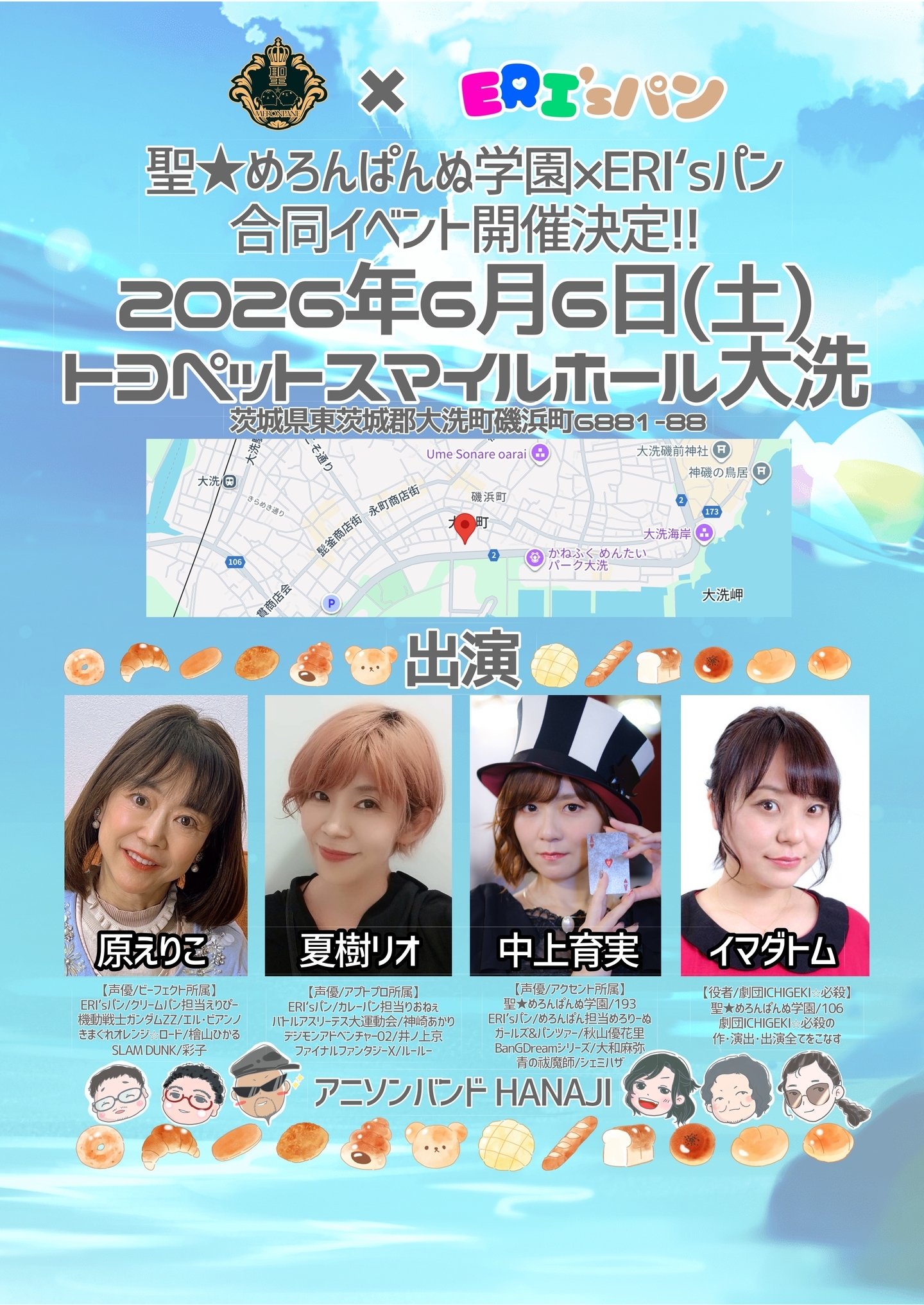 声優・中上育実は、2026年6月6日(土)に第二の故郷・大洗町(トヨペットスマイルホール大洗)にて、単独イベント『聖★ERI'sぱんぬ学園祭 in 大洗』を開催することを決定致しました。本イベントは、中上育実が主催・企画・脚本の全てを手がける集大成。豪華ゲスト(イマダ トム、原 えりこ、夏樹 リオ)が集結し、完全オリジナルの生アフレコ・ボイスドラマを披露します。生バンドライブの実現に向け、Ritchie、HANAJIの参加も現在調整・準備中です。会場規模や最終的なライブ構成は、反響を見て12月4日のチケット情報解禁時に発表されます。チケットの最速先行予約は、大洗での宿泊手配に間に合うよう、12月13日より受付開始予定です。地元への熱い想いを込めた、異例のクオリティを追求するイベントにご期待ください。