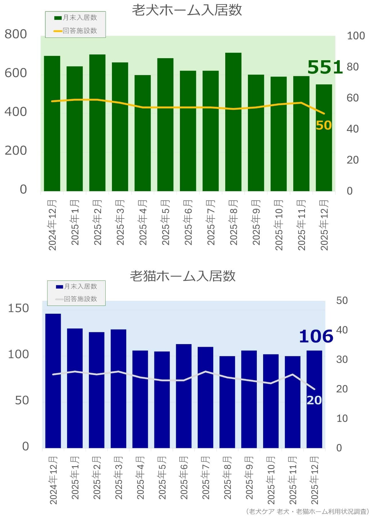 https://www.rouken-care.jp/ )は、2025年12月末時点の全国の老犬ホーム・老猫ホーム利用状況の調査を実施しました。